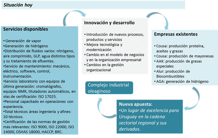 La industria oleaginosa enfrenta su periodo de madurez, donde los costos de procesamiento están ligados a fuertes niveles de escala; con todo, la envergadura del sector como el gran proveedor de alimentos, energía y otros derivados como farmaquímicos, requiere de plataformas productivas agroindustriales especializadas y asociadas a menores escalas, que posibilitan generar diferenciaciones hacia adelante de la cadena sectorial, e implican además fuertes procesos de innovación y gestión tecnológica.